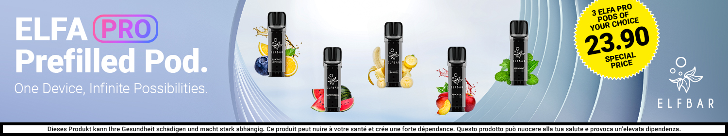 Quand il s'agit d'acheter des Liquids et Pods nous te proposons un large choix de saveurs et de marques. Que tu préfères les arômes fruités comme les Elfbar Elfa Watermelon Pods ou des saveurs de tabac classiques, comme Vuse Pro Golden Tobacco nous t'offrons avec les marques Elfbar, Vuse et VEEV un large choix. De plus, à partir d'une commande de 160 CHF, nous livrons gratuitement tes e-liquides et pods directement chez toi.