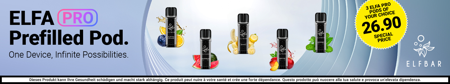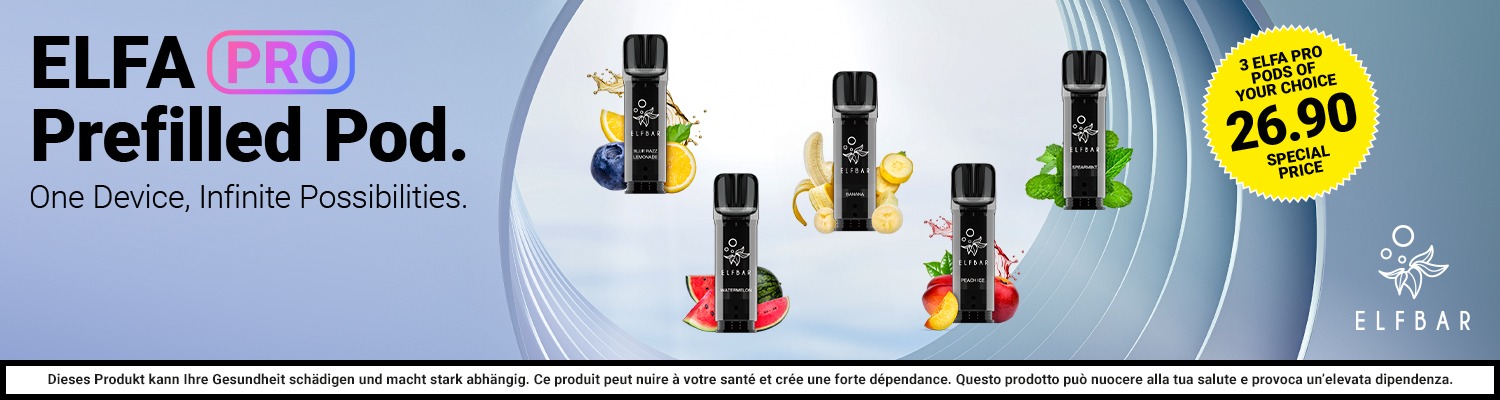Quando si tratta di acquistare liquidi e cialde vi offriamo un'ampia scelta di gusti e marche. Sia che preferiate gusti fruttati come il Elfbar Elfa Watermelon o i classici aromi di tabacco, come Vuse Pro Golden Tabacco vi offriamo i marchi Elfbar, Vuse e VEEV offrono un'ampia scelta. Inoltre, consegniamo gratuitamente i liquidi e le cialde direttamente a casa vostra a partire da un valore d'ordine di 160 franchi.